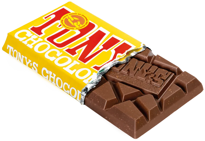 Tonys Chocolonely Milk Almond Honey Nougat 32% is Creamy milk chocolate with sweet honey almond nougat, a mellow classic in a bright yellow wrapper. A deliciously smooth bar with crunchy almond pieces and sticky honey nougat, perfect for a treat anytime.