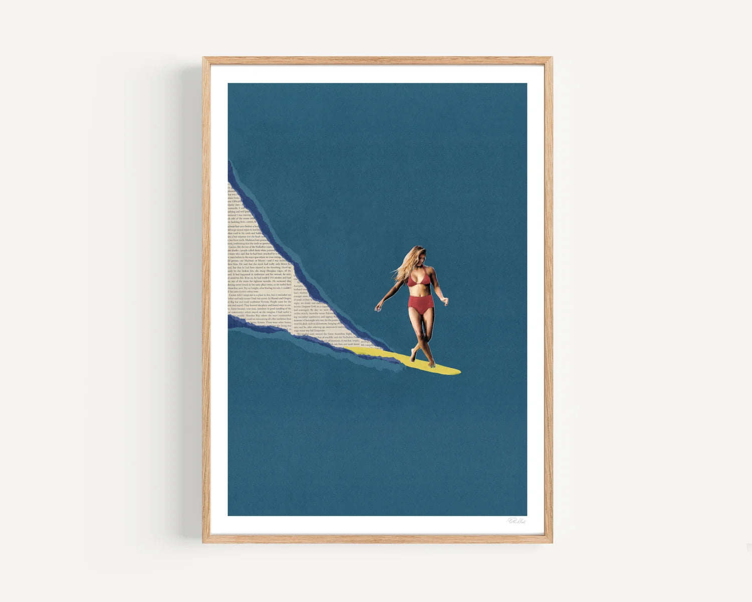 Inspired by the poetry of women flowing on water, this artwork evokes romance and sentiment, with retro surf vibes. Perfect for homes, cafes, or shops, it’s printed on 300g paper.