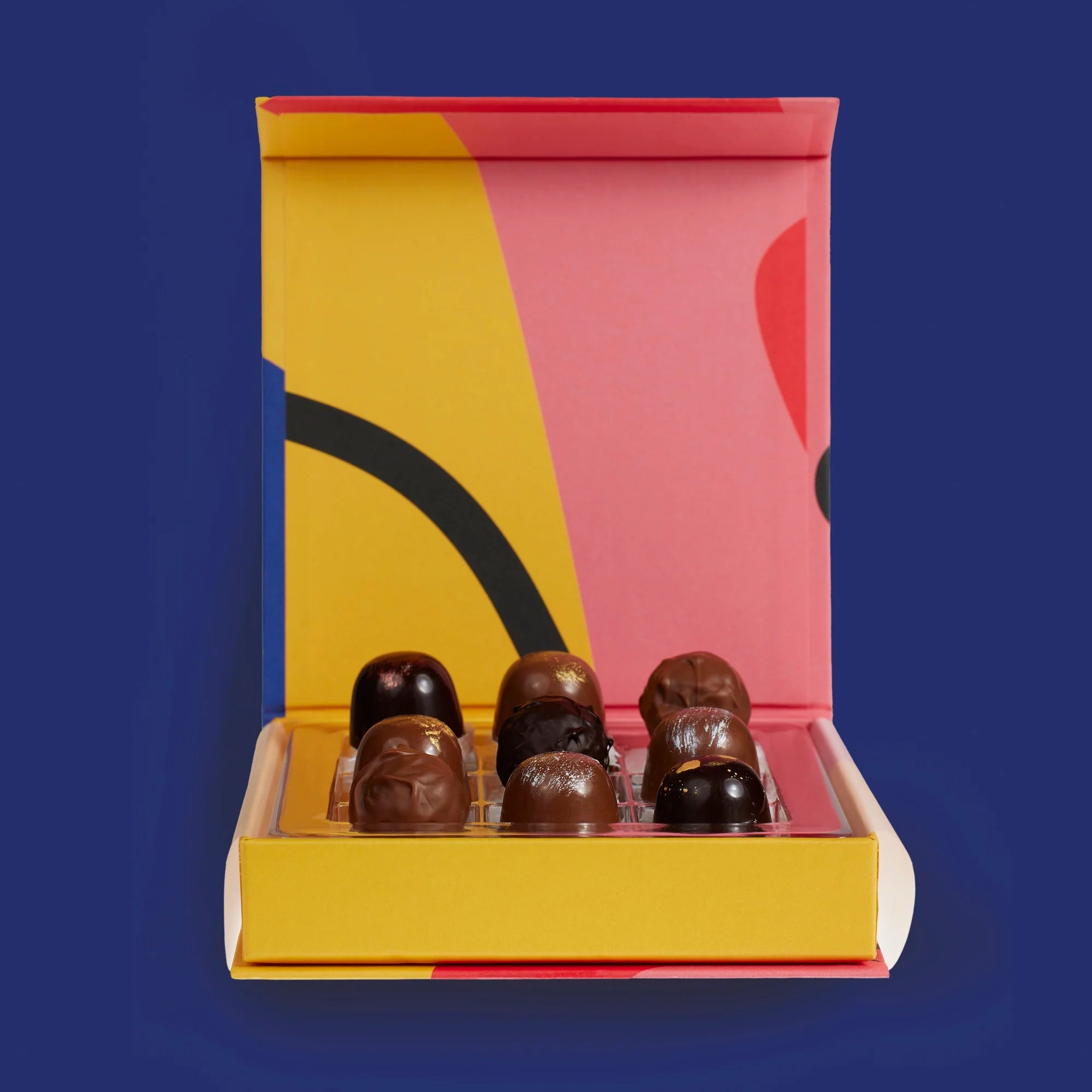 This indulgent selection showcases a variety of textures and tastes, carefully balanced to complement the natural flavour notes within each chocolate: