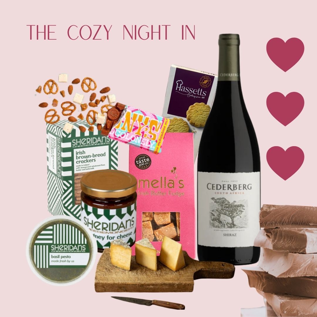The Cozy Night In Hamper is made for sharing, gifting or simply keeping for yourself. The image shown is just an illustration. Each Cozy Night Hamper is filled with cosy treats and thoughtful little luxuries that match its full price. A perfect pick for nights in, film marathons and a touch of romance.