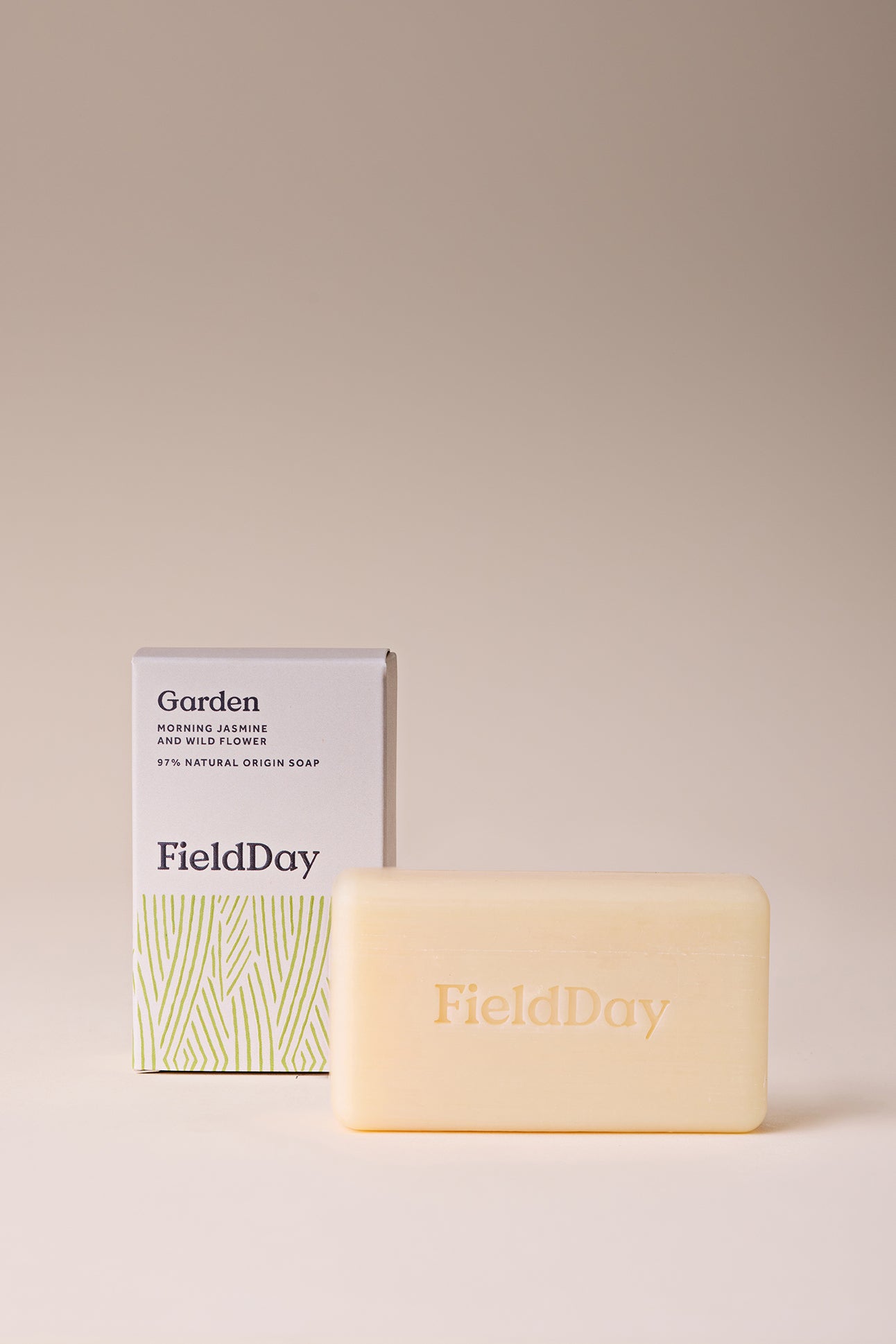 FieldDay Garden Soap Bar with Morning Jasmine and Wildflower fragrance notes.