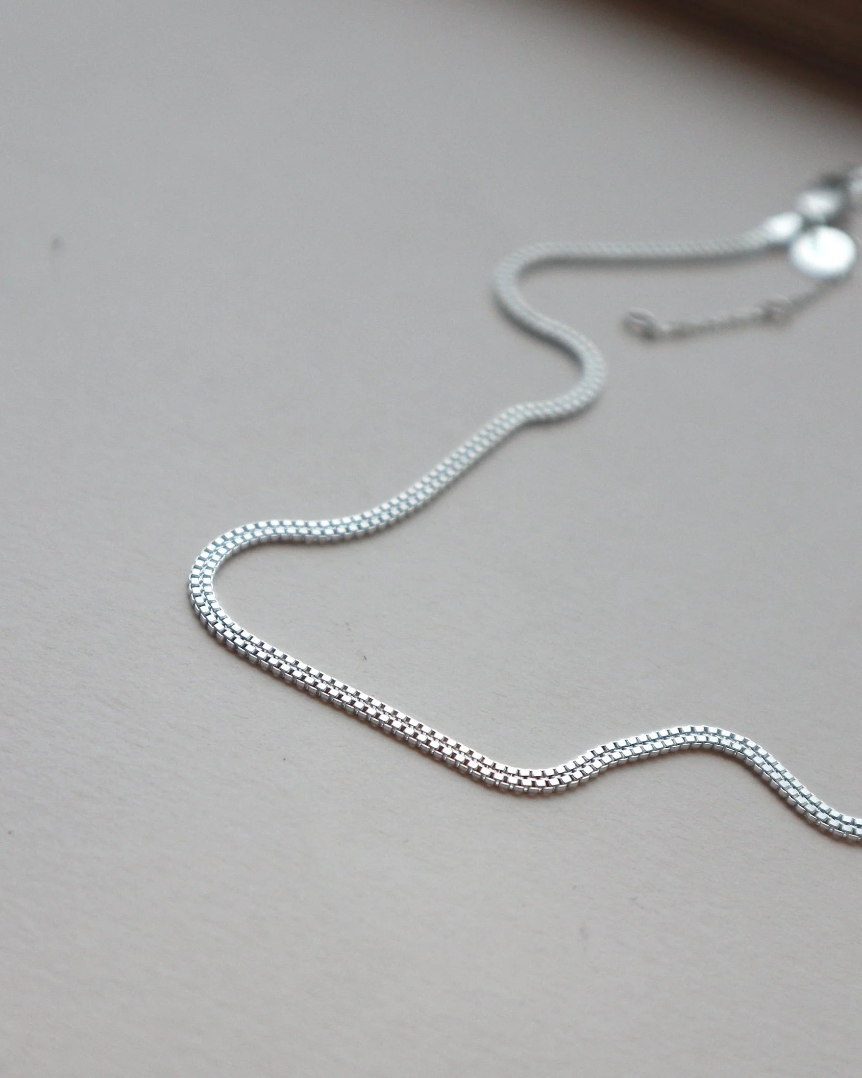 The 90's inspired choker comprised of two retro box chains in one slinky chain, the perfect layering starting point to stack with your other favs.