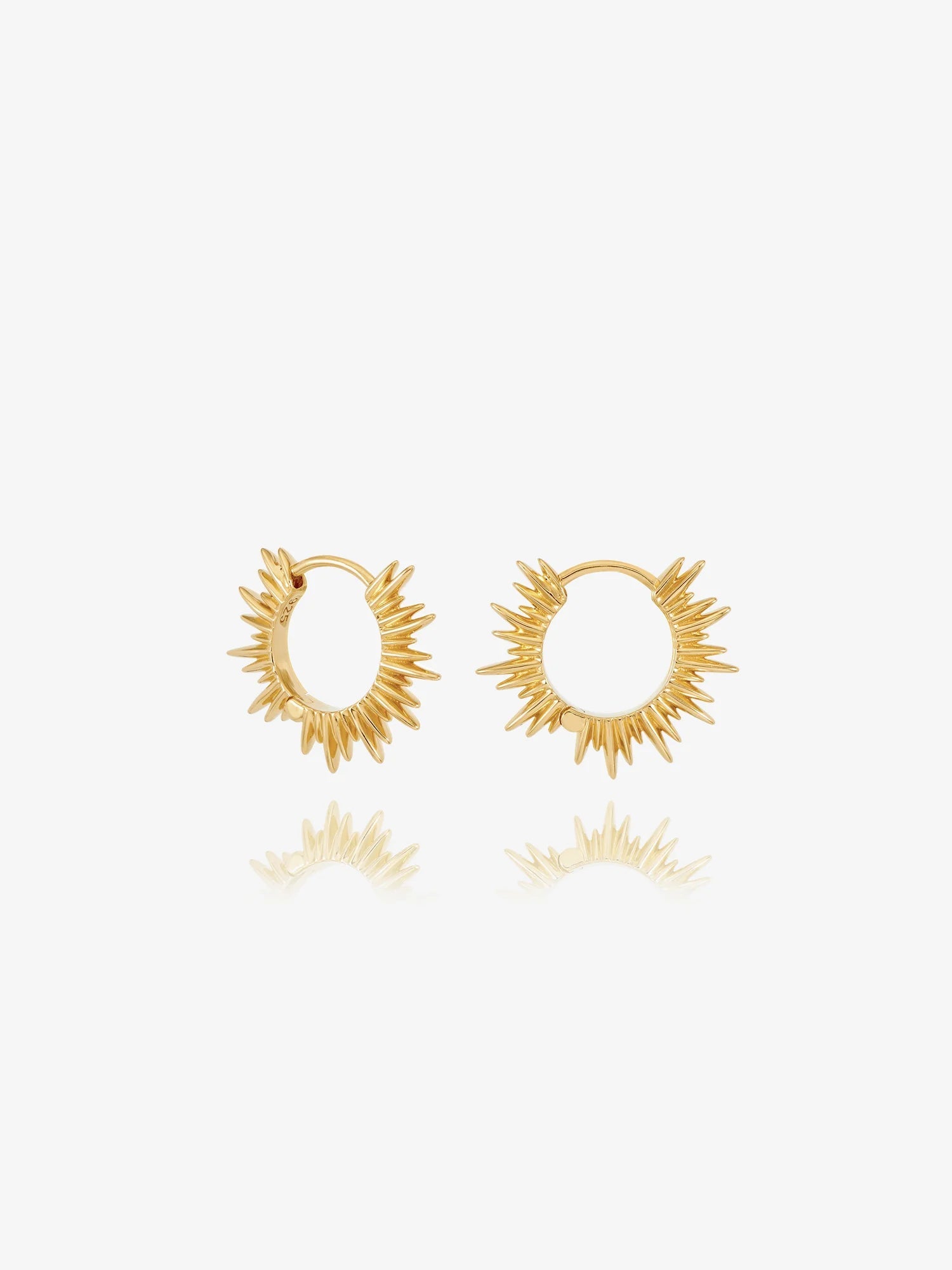 Carpe Diem. Radiate energy and seize the day in these iconic Art Deco sun huggie hoop earrings. A simple and secure click mechanism makes for easy on and off.
