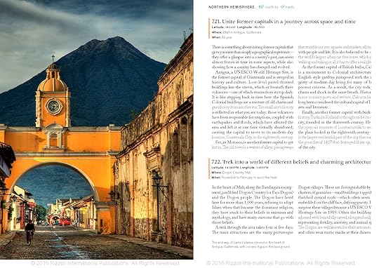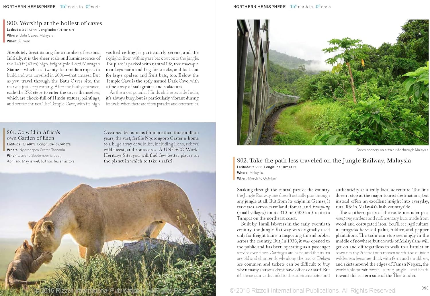 Each activity is location-specific and as geographically unique as bird-watching in Kenya or driving through clouds in Sri Lanka, as well as other to-dos that can be done anywhere, such as sketching a sunset behind an architectural monument.