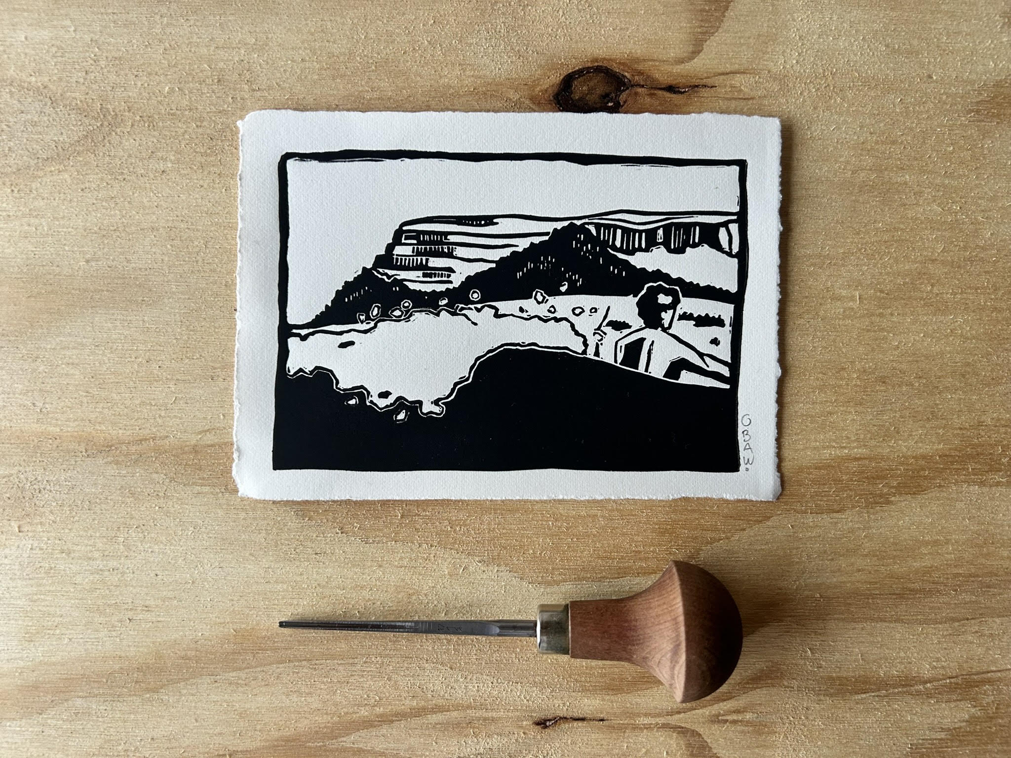 Roman is a Strandhill-based linocut artist working under OBAW Studio. He is passionate about the linoprinting process, from designing and carefully carving the block to the moment the ink is revealed on paper. His work is inspired by the small, familiar moments and scenes of life by the sea.